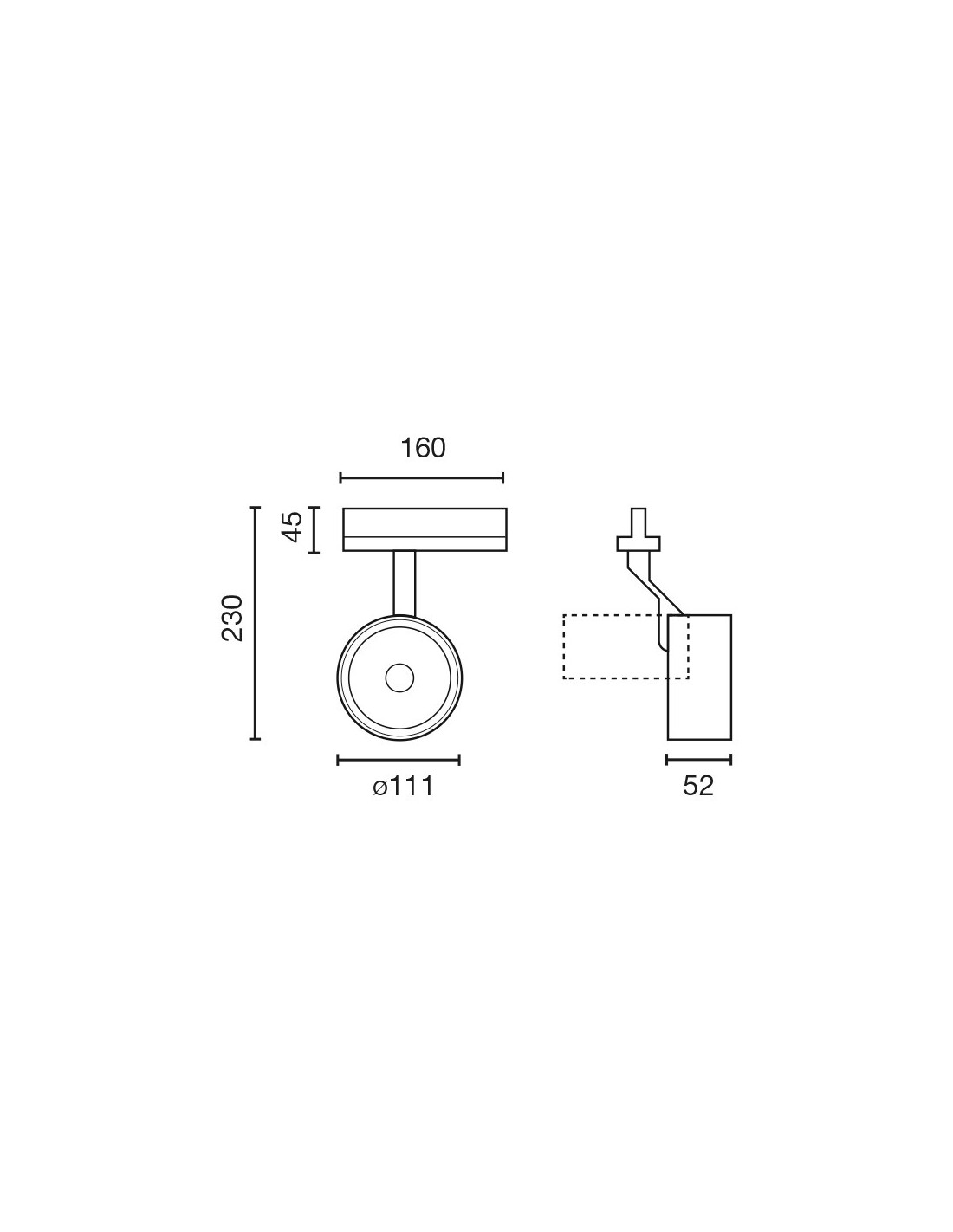 Diam 111 mm x Altura 215 mm x Profundidad 52 mm